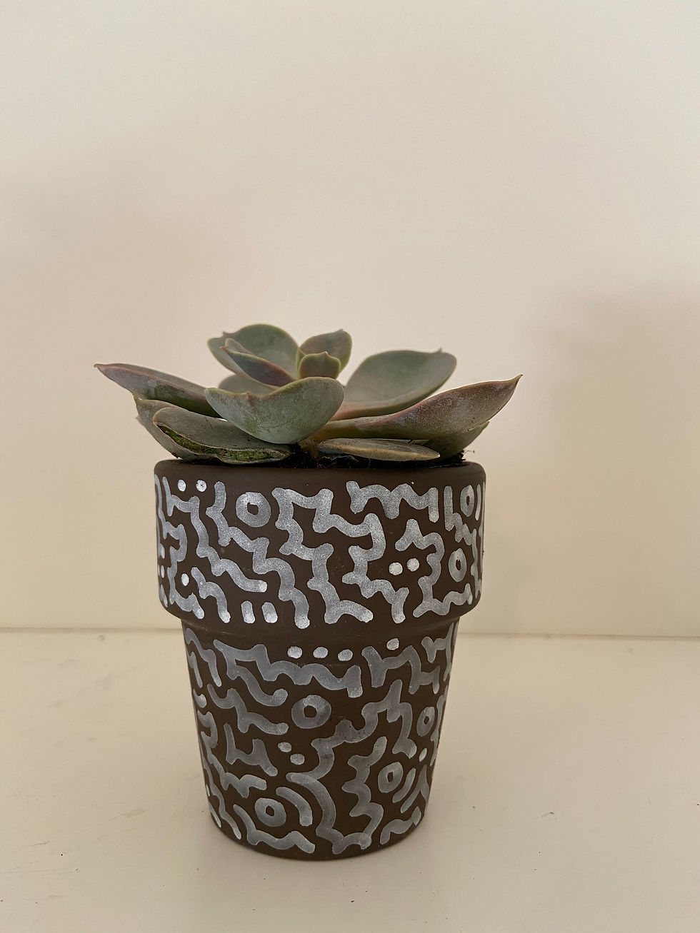 Each piece is unique. I can recreate any of the pot designs and art, but succulents and plants may vary on availability.  Special art design and color requests are available.